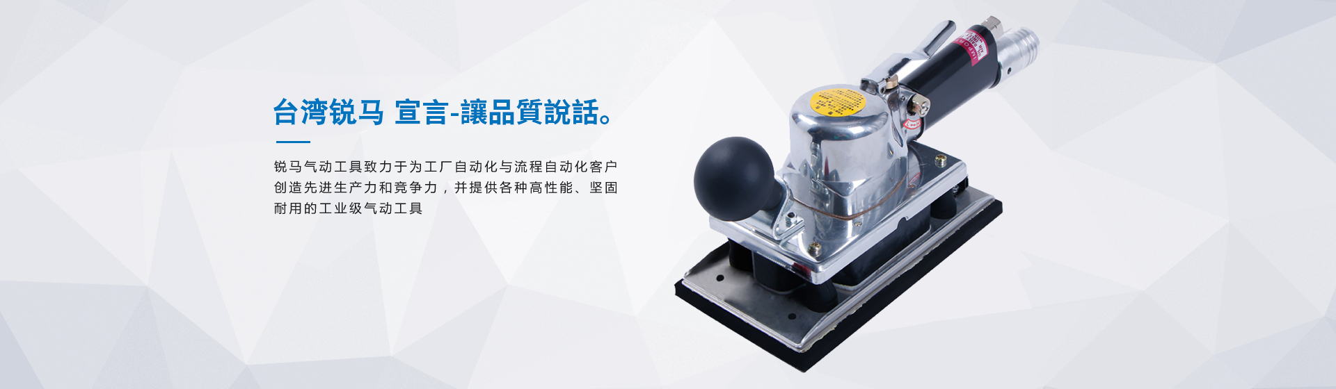 為給廣大客戶提供更加優(yōu)質(zhì)完善的服務(wù),臺灣銳馬氣動工具于2001年進(jìn)入中國大陸市場,并以100%臺灣原裝進(jìn)口氣動工具在大陸銷售銳馬、杜派氣動工具以及充電式電動工具。